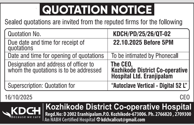 Quotation invited for Autoclave Vertical -Digital 52 L"